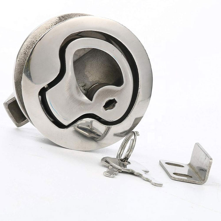 Stainless Steel Grade 316 Marine Hardware Flush Compression Pull Ring 2" Inches Slam Lock Latch Fingerprint Unlock Polished
